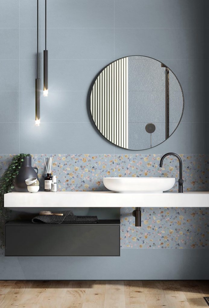 Eine reichhaltige und einzigartige Kollektion, die sich durch vier kräftige und moderne Farben auszeichnet, erhältlich im neuen Format 33x100. Zwei Dekore, eines floral und das andere geometrisch, ermöglichen die Gestaltung und Verkleidung jedes Raumes. Ein einziges Projekt, das Eleganz und Stil vereint.